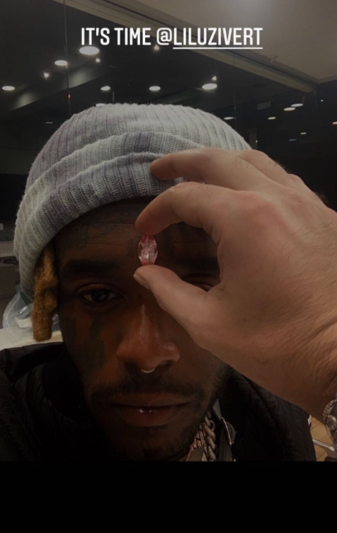 래퍼 릴 우지 버트가 자신의 SNS를 통해 이마에 핑크 다이아몬드를 이식한 영상을 공개했다.