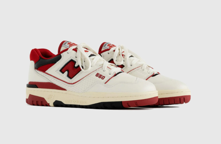 오랫동안 잊고 있던 뉴발란스 550 운동화는 89년에 처음 출시되었지만, 당돌하고 당당한 미관을 간직하고 있는 통통한 모양, 깨끗한 흰 가죽 윗부분, 붉은 악센트로 오늘날의 운동화 장면에 완벽하게 들어맞습니다. 공동 브랜드의 디테일이 힐과 혀에 모두 적용되어 협업적인 룩을 완성합니다.
