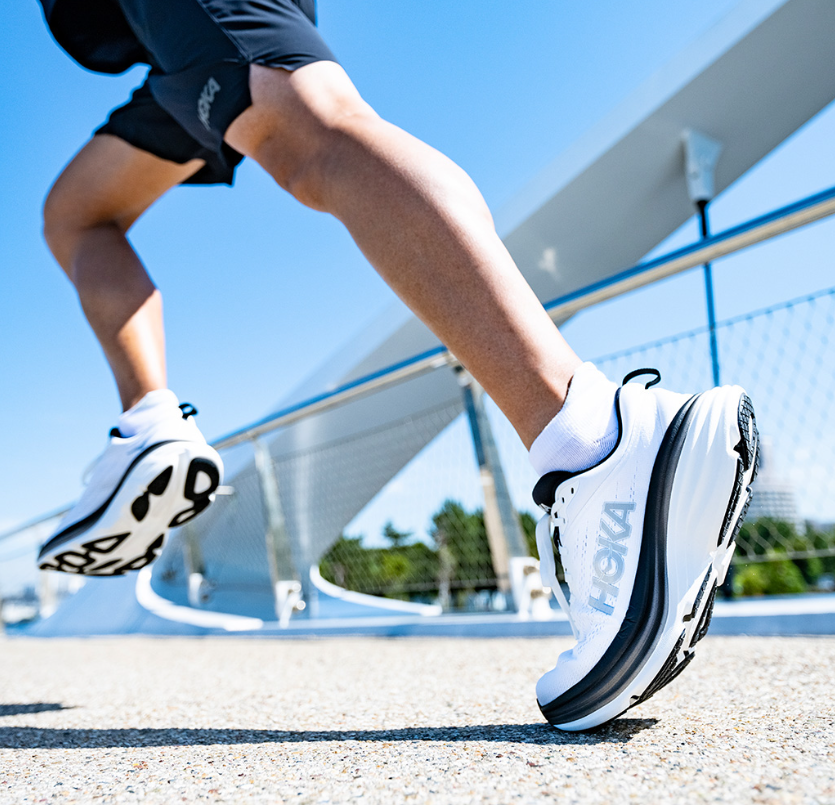신발의 갑피는 엔지니어링 메시로 제작되어 통기성과 과도한 무게를 추가하지 않고 안전한 착용감을 제공합니다.호카오네오네의 기술로 제작된 본디8 시리즈는 내부 힐 카운터는 힐을 제자리에 잠글 수 있도록 도와주어 추가적인 안정성을 제공하고 신발의 탈착을 방지합니다.