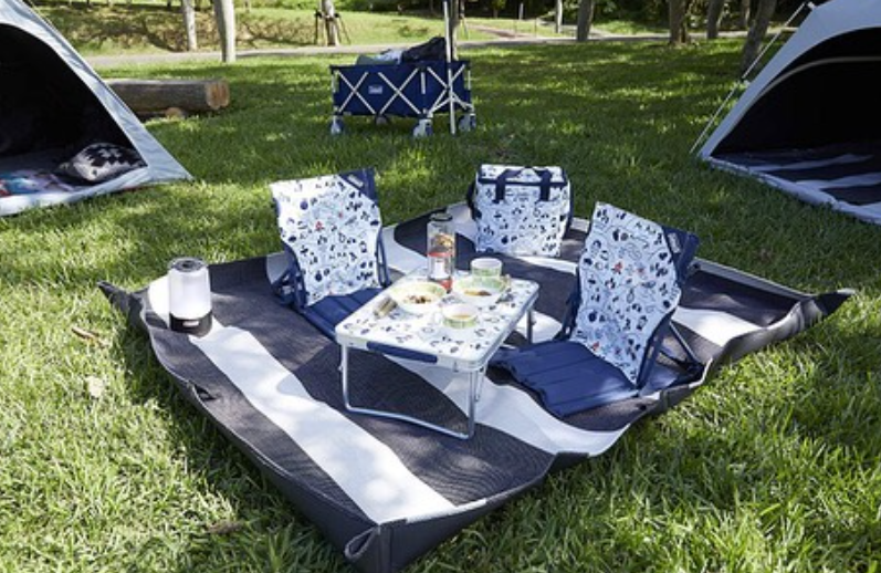 사용 사이즈는 약 210×170cm로, 어른 4명이 앉을 수 있는 큰 타입 . 무게는 약 1kg입니다. 핸들과 스트랩이 본체에 부속되어, 빙글빙글 둥글게 수납하면 약 20 × 45 cm에 정리할 수 있어요.스냅 버튼으로 시트 경계선을 시작할 수 있으며 바람과 모래를 막는 점도 매력 중 하나. 해변 등 바람이 강하고 모래가 날아오는 장소에서 사용하고 싶은 장면에도 도움이되는 사양입니다.