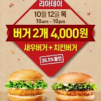 | 리아데이, 롯데리아 치킨버거 + 새우버거가 4천원? (0) | 2017.10.12 |